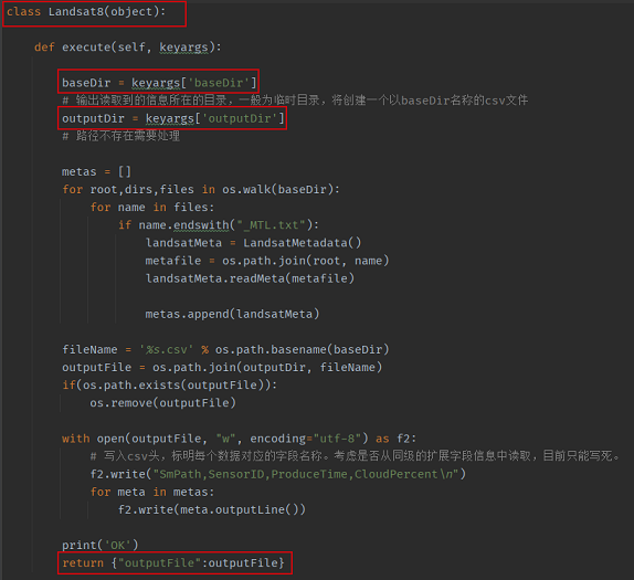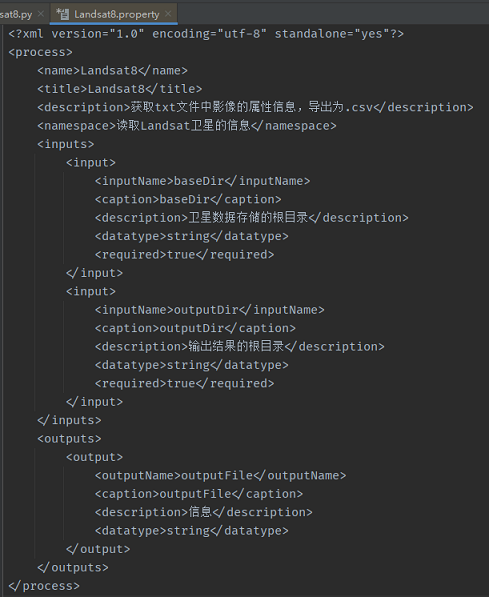 1、 文件名必须与类名保持一致,编写 Python 类命名为 Landsat8,因此,这里保存为 Landsat8.py 文件;