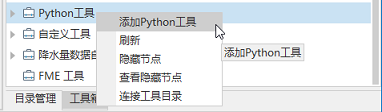 在工具箱 Python 工具分组处单击鼠标右键,选择添加 Python 工具。