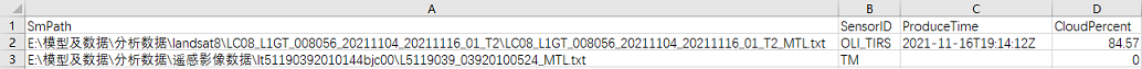 打开输出的.csv文件,可以看到每一行都记录着不同影像的属性信息。
